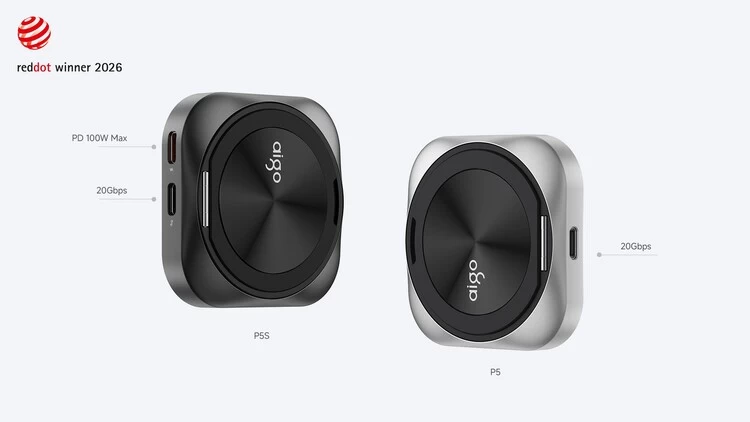 aigo 存储 P5、P5S、P3S 三款移动固态硬盘同时斩获红点奖,创下国产存储行业新纪录:首次有国产品牌三款产品同时获得该奖项。这是 aigo 布局存储领域后的首个红点奖,标志国产存储工业设计从 “跟随” 跻身国际前列。