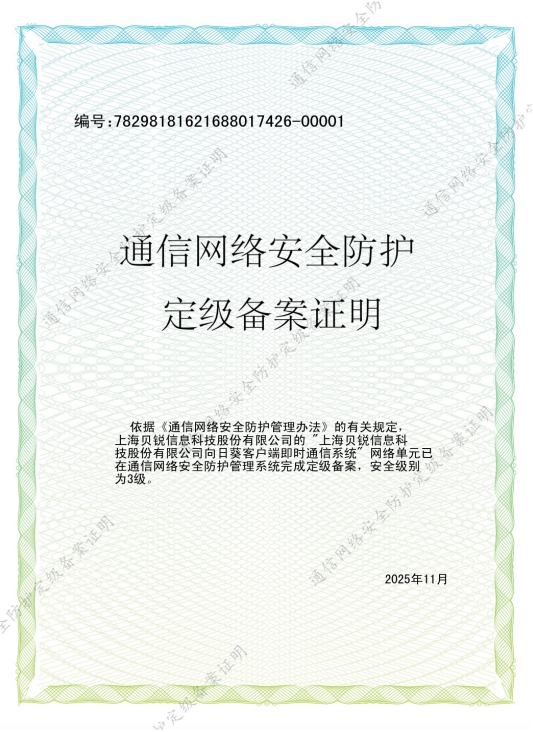 贝锐向日葵顺利通过“通保3级”备案,意味着其远控服务的通信网络单元在安全防护、数据保密、系统稳定性等方面达到了通信行业的较高安全标准,远控通信链路的合规性、完整性与保密性获得了权威背书。这一认证与面向信息系统的等保认证形成互补,更精准地覆盖了通信网络的运行安全。