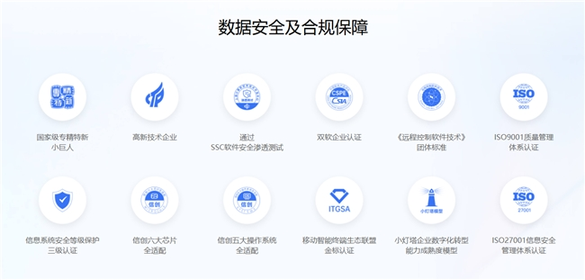 在信创国产化方面,向日葵积极适配国产操作系统及芯片,目前已支持统信UOS、银河麒麟、中科方德等操作系统及飞腾、鲲鹏、兆芯、海光、龙芯等国产芯片,是唯一获得信创“大满贯”的远程控制产品,确保了从底层到应用层的数据安全自主可控。