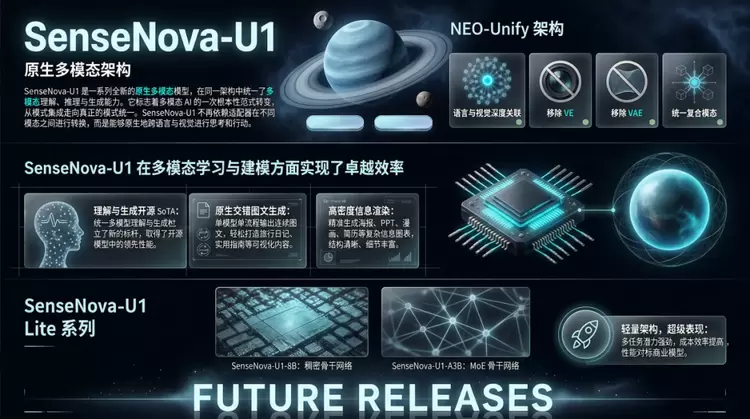 今日,新一代理解生成统一模型SenseNova U1正式发布并开源,基于其自研NEO-Unify 原生统一架构,在单一模型中实现多模态理解、推理与生成的深度融合,并凭借图文交错生成与高密度信息表达等突破性能力,重新定义多模态技术标杆。
