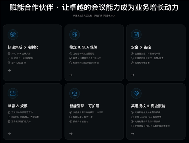 当 AI Agent 开始自主撰写会议纪要、生成待办事项,甚至回写业务系统完成闭环,企业对会议系统的需求已悄然改变。传统的 SaaS 会议软件凭借“开箱即用”完成了市场普及,但在 Agent 时代,政企客户对会议的真实诉求不再是标准化功能堆砌,而是安全可控的数据主权、适配业务流程的智能化能力,以及与 IT 基础设施无缝集成的开放架构。具备安全可扩展、AI 融合的会议能力底座,正成为政企会议基础设施的必然选择。