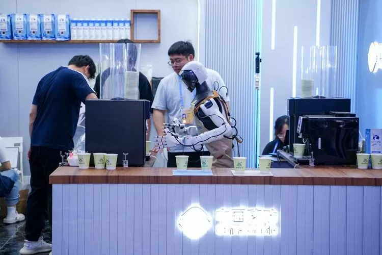 图注:“移动星厨”展区的咖啡机器人正在工作