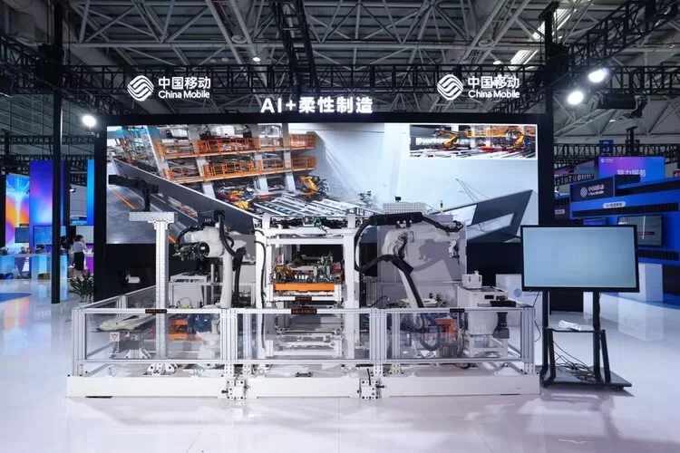 图注:中国移动智能服务展区的“AI+柔性制造”项目展示