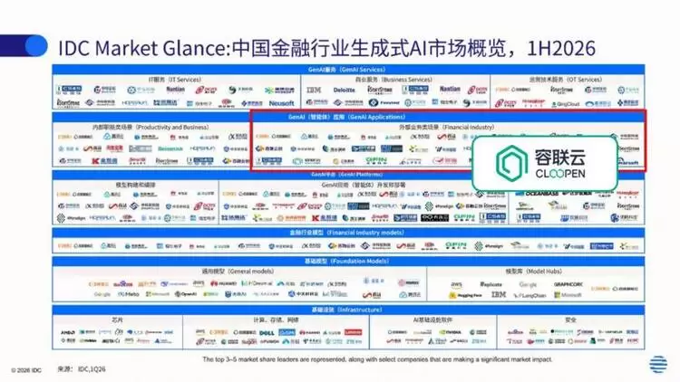近日,国际数据公司(IDC)正式发布 《IDC Market Glance:中国金融行业生成式 AI 市场概览,1H2026》,首次系统性梳理中国金融生成式AI市场生态。