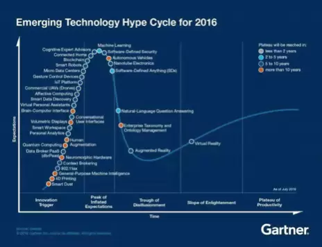 根据Gartner在2016年发布的各热门技术产业的趋势走向来看,VR产业已经度过了此前的聚焦期、泡沫期、低谷期,开始走向平稳增长的道路上。也就是说,已经存活下来的VR企业已经基本逃离了死亡谷。