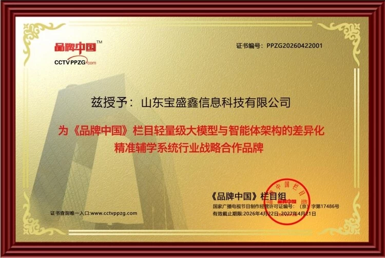 2026年,宝盛鑫凭借其在智慧司法教育信息化领域的深度应用和广泛创新实践,获评“《品牌中国》栏目战略合作品牌”。