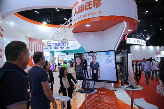值得一提的是,继今年4月参加春季展成为全场最大亮点后,再度参展的搜狗翻译宝,此番领衔搜狗自主研发的六大AI软硬件共同亮相,不可思议“人脸迁移”技术、神奇“读唇术”、能与患者“对话”的搜狗明医分诊技术等……生动有趣的多款AI黑科技,让搜狗展台人头攒动,气氛热烈。