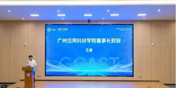 仪式在庄重而热烈的氛围中拉开帷幕。广州应用科技学院董事长王睿首先致辞。他强调,传统碎片化、阶段性的就业指导已难以为继,唯有走校企协同、产教融合、数字赋能、全程育人的道路,方能将育人实效落到实处。易展翅深耕青年职业服务十三载,技术先进、资源雄厚、体系完善。学校与易展翅在育人初心与服务目标上高度契合。此次合作既是学校深化“产教融合+AI赋能”双轮驱动的创新实践,也是打通“人才培养—实习实训—就业创业—职业成长”全链条体系的重要突破。