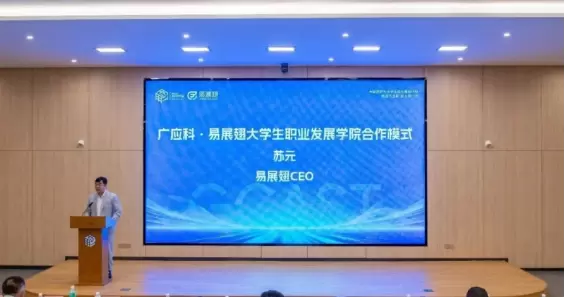 易展翅CEO苏元在现场详细解读了易展翅与广应科共建大学生职业发展学院的创新合作模式。他介绍,学院将采用“10+1+N”协同模式,通过AI技术与千万级岗位数据的深度赋能,让每一位学生从入学起就能拥有清晰的成长地图。苏元表示:“我们不是在挂一块牌子,而是在构建一个从大一到大四全覆盖的职业成长闭环生态。”