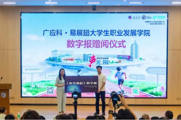 新华社新闻信息中心作为易展翅的战略合作单位,在启动仪式现场,同步举行了新华社《参考消息》数字报赠阅仪式。新华社新闻信息中心广东中心主任丁莎代表新华社,向广州应用科技学院赠送《参考消息》数字报,广应科董事长王睿代表学校接受赠阅。此次公益赠阅,可帮助广大学子实时了解全球时事热点,跳出固有认知边界、拓宽国际视野。