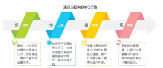 相比传统以硬件为核心的企业级通信服务,云服务无论从短期现金流压力或长期整体投入来看都大幅降低了客户的使用门槛,并且让原本需要数月才能搭建完成的通信系统可以快速上线。云服务的模式允许企业按需付费,在业务量突然扩张时也能够迅速扩容。与此同时,通信云服务的更新迭代快速且便捷,更加符合企业灵活发展的需要,通过及时应用最新的技术,让企业客户可以保持自身竞争力,紧跟市场变化趋势。