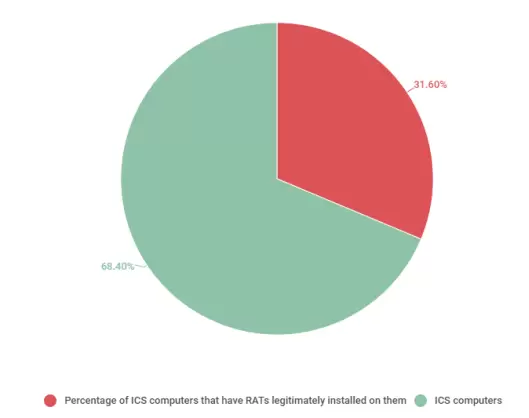 根据卡巴斯基安全网络统计数据,2018年上半年,使用Windows OS的工业系统中有三分之一安装了合法RAT。在工业系统中,我们指的是SCADA服务器、historian服务器、数据网关、工程师和运营者工作站以及人机界面计算机。