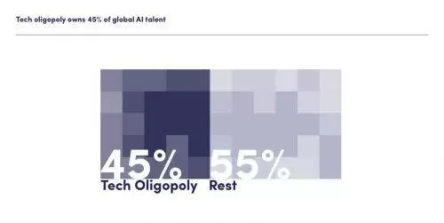 最近,World Economic Forum 报道了排名前 20 的技术公司不是美国公司就是中国公司。也许未来 AI 可以被其他的 AI 发明、设计并编程出来,但是现在来说,还是由开发人员和研究人员开发 AI。技术寡头正在以空前的速度和规模战略性垄断 AI 人才。他们都积极地参与到了 AI 人才的竞争大战之中,在招募最有价值的技术人才的时候不留余力。