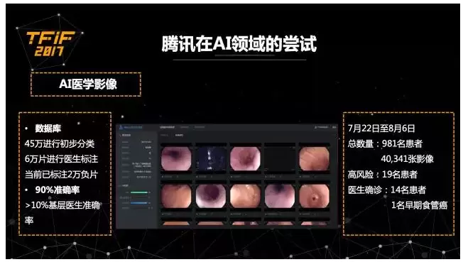腾讯在医疗领域的新产品——腾讯觅影。利用腾讯AI Lab提供的深度学习技术,在医学影像中进行疾病早期筛查及诊断。
