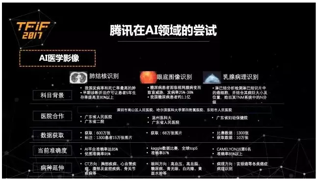 腾讯还在此次分析师会议上透露,除了现有业务,公司内部研发人员近期还在围棋人工智能程序、面部识别以及医学影像等多个领域取得了突破性进展。