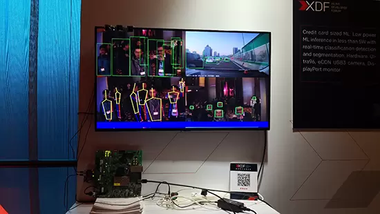 XDF2018北京站展位现场演示的实时机器学习推断演示-人脸识别、车辆识别等。