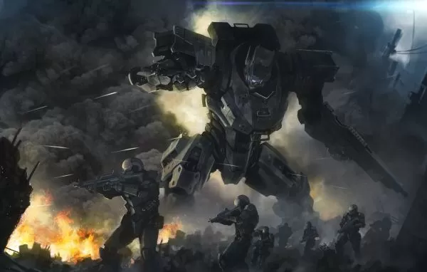 资料图片:艺术家绘制的未来机器人作战场面。(图片来源于网络)