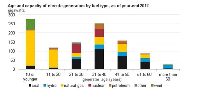 截至2004年,美国核电和煤电的大部分发电机也开始达到寿终正寝的状态。它们很快就需要进行昂贵的升级或维护,或者将其改造成发电机以备用其他能源。