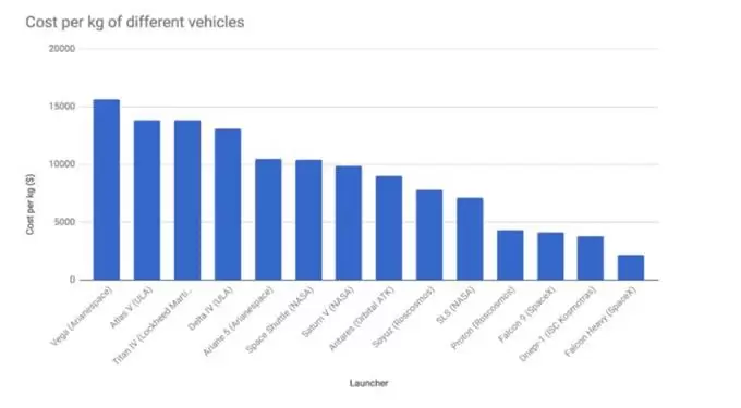 在范围最底层是SpaceX的猎鹰9号火箭,它们已经显示出将宇宙飞船送入太空的成本降低了3-5倍。即便如此,它还是需要降低成本。