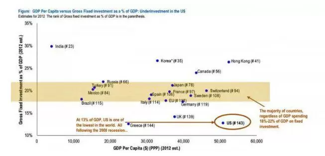 建筑业是一个至关重要的领域,美国目前在此还没有成为世界领先者。在2012年建筑项目支出方面,美国占GDP的比例只超过希腊。它在建筑支出中排名第143位,占GDP的13%,是全球最低的之一。当你看到目前运行的最大的基础设施项目时,亚洲和欧洲是最大的消费者。