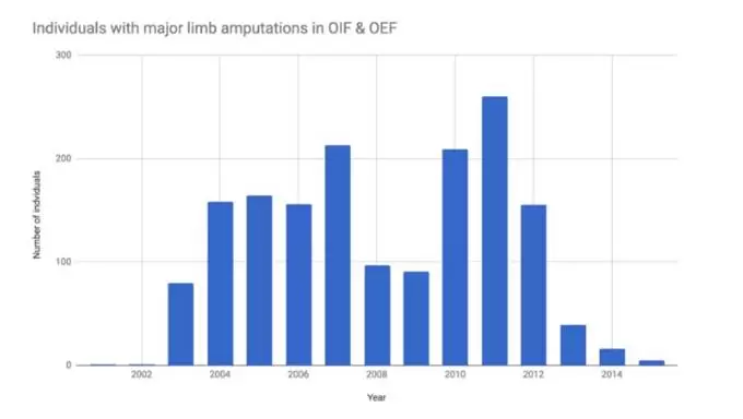 在过去十年中,BMI背后的推动力一直是军方。随着简易爆炸装置(IEDs)的使用在阿富汗和伊拉克变得普遍,肢体损失在士兵中变得更加普遍。身体护甲得到改善,意味着士兵不太可能在爆炸中死亡,但四肢没有受到保护。从2000年到2015年,约有1,600名士兵进行截肢。