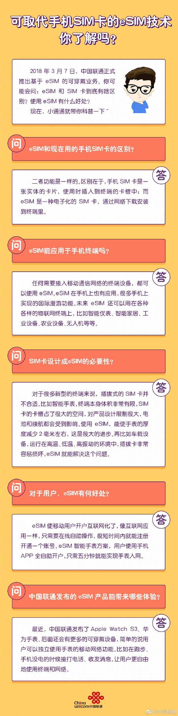 eSIM和SIM卡到底有啥区别?使用eSIM有什么好处?今日,中国联通进行了科普。