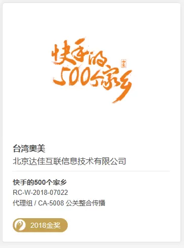 快手科技斩获2018“金投赏”金奖 用500个家乡温暖乡愁