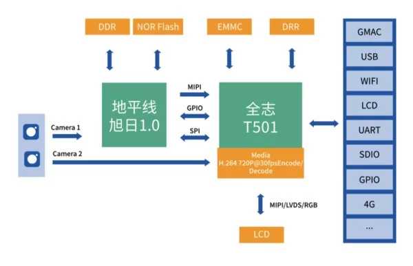 该模组将内置地平线 AI 算法的地平线旭日1.0人工智能处理器搭载到全志科技的面向行业应用的处理器平台 T501,从而形成真正的行业 +AI 的应用解决方案。
