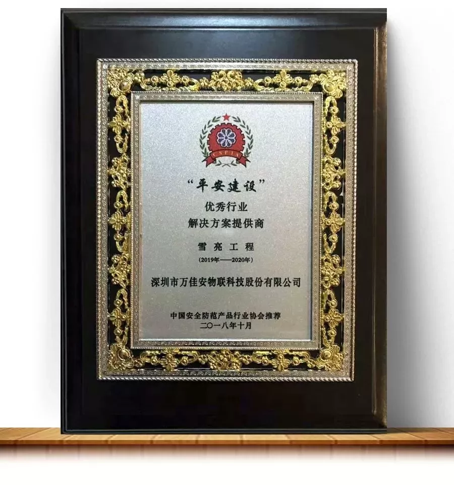 2018年10月23日,万佳安荣赝平安建设优秀行业(雪亮工程)解决方案提供商。