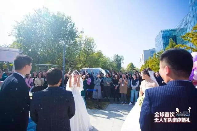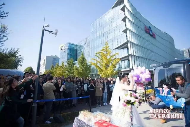 打听了一下才知道,原来是百度的三名程序员小哥哥,在1024当天用无人车在大厦举办了婚礼!