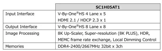 “SC1H05AT1”支持8K内容处理功能,能满足全球市场对8K内容播放日益增长的需求。SC1H05AT1可兼容HDMI2.0/2.1和V-by-One接口,内置的升级功能和Socionext独自研发的高画质技术将Full HD(2K)、4K视频内容得以在8K面板上以最佳画质回放。