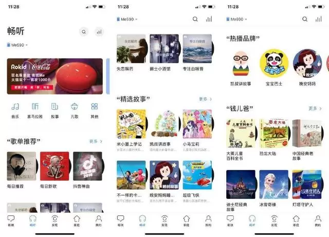 当然,作为一款人工智能音箱,可口可乐联名版Rokid Me不仅仅内置了喜马拉雅、QQ音乐、太合麦田等诸多亿级的资源内容,用户可以随心畅听歌曲、故事、新闻、相声、儿童读物等等内容,更是能通过语音直接点播。