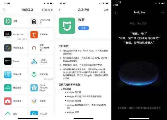 而在智能家居的控制上,Rokid Me也接入了米家、Sonos、LifeSmart等40多个品牌,目前已经可以利用语音来控制100多种设备,并且平台向诸多开发者开放,今后会拓展更多的设备连接。拥有Rokid Me,你就可以轻松控制家中的智能家居设备,有什么需求一句话就搞定。笔者经过一番设置之后,将Rokid Me成功接入了米家平台,可以直接通过Rokid Me语音控制家里的米家扫地机器人、米家台灯等智能设备,完全不需要在通过手机去进行控制,相当方便。