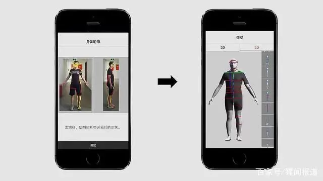 衣呼目前已在微信公众号、微信小程序上线。它通过AI和3D技术将用户和服装数字化,是想C端与B端高效数据连接。用户在自动量体过程中穿着衣服便可进行,只需拍摄正、侧面两张照片,系统就会通过图像识别并定位照片中的人,并预测人体的轮廓,包括胸围、肩宽、身长、脸型等,最终获得毫米级3D模型以及上百个身体数据,其人体建模的精度可以实现紧身衣情况下1cm以内误差,穿T恤情况下1-2cm误差。在用户测量后平台的AI算法自动设计出最符合用户身型的服装版型,直接发送至工厂加工。