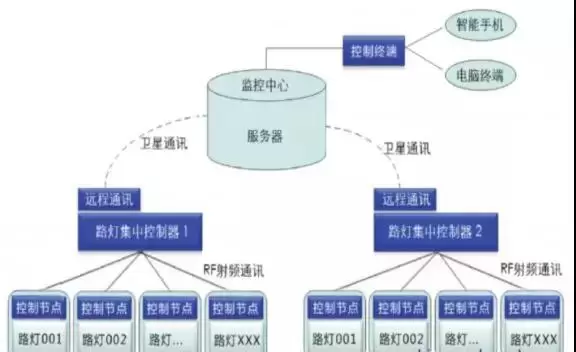 感应器à单灯控制器à集中控制或监控中心启动à灯具点亮à状态返回à各种中央后台监控管理。