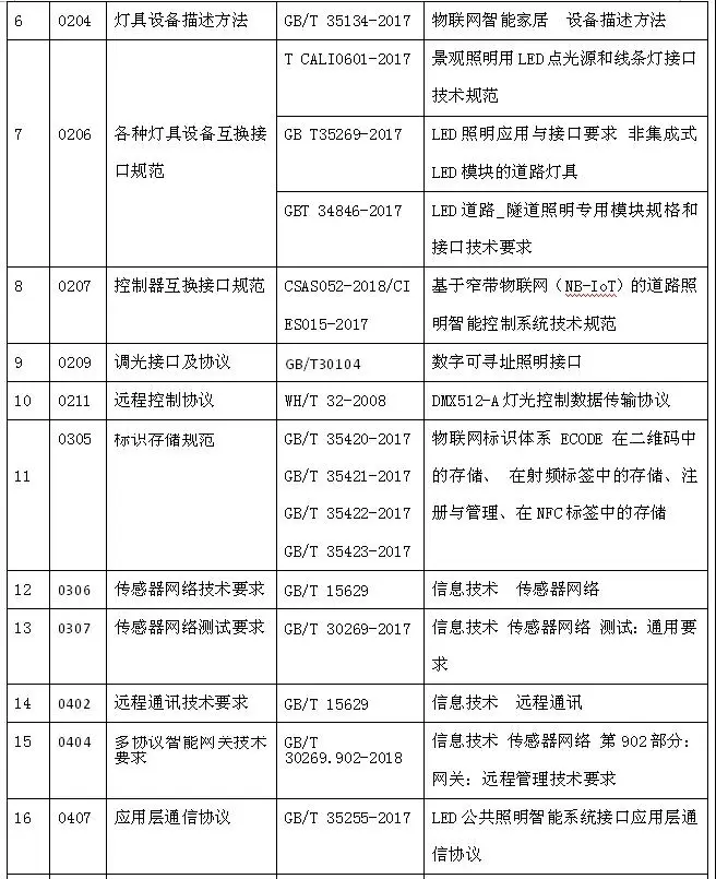 4.5 框架中所列的仅是照明物联网的内容,但也是多功能路灯的基本体系框架,如果加上其他功能(环境监测、安全监控、WiFi基站、信息显示等等)的技术规范和产品标准体系,就可以形成多功能路灯物联网的体系框架。