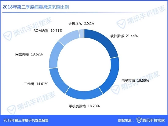 腾讯手机管家联合腾讯安全联合实验室移动安全实验室,于近日发布《2018年第三季度手机安全报告》(以下简称“报告”)。报告显示,2018年第三年季度手机病毒新增181.13万个,同比减少47.83%。虽然木马病毒增速趋缓,但其隐蔽性的提升却增强了危害程度,大家可以使用腾讯手机管家进行安全防护,避免木马病毒的侵害。