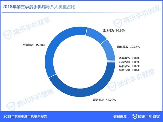 (图:数据显示,2018年第三季度手机病毒包括资费消耗、恶意扣费等类型)