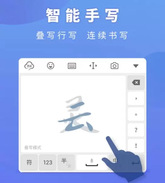 灵云智能输入法的手写输入功能支持全屏、半屏手写输入,同时支持横屏行写、竖屏叠写多字,可连续手写整句话,怎样书写都能轻松识别输入。