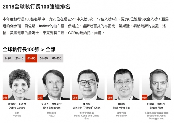 联发科蔡明介蝉联全球百强执行长,风雨20年树华人企业标杆