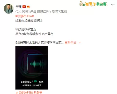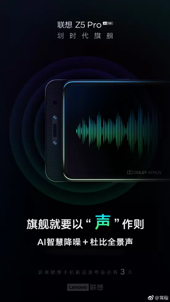 随着科技的不断发展,智能手机也日新月异,对于相当一部分用户而言,手机的影音娱乐类功能是其选购手机的一大要素。10月29日,联想手机掌门人常程通过微博公布了联想Z5Pro发布会的最新倒计时海报,海报显示:联想Z5Pro拥有AI智能降噪+杜比全景音效,影音功能十分强大。