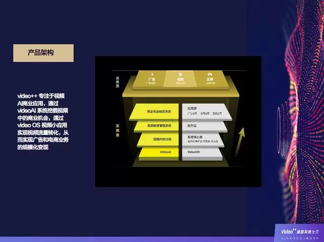 新文娱的万亿级新兴市场引擎到底怎么做?我们从2012年开始闷头做技术做到2016年,当我们发现没有一个特别前端的形式让用户的体验变好,也没有办法让AI视频内容深度理解,所以我们做了第二款产品VideoOS,AI识别数据驱动的功能型应用,做了一个视频的小程序系统,让视频的功能越来越多,打开播放器可以看视频、买东西、投票、完成任务,甚至在视频玩和内容相关的小程序,背后都有我们的贡献。后来发现光提供SAAS不能让企业起到最大的作用,2017年开始我们投了很多钱,投入巨大的力量把AI场景营销平台的广告业务做起来,我们从2016年开始年销售几百万的收入到2017年达到1.5亿的营收,现在也在快速稳步增长。2018年有了电商和新零售、产业应用的业务,这是一个非常大的市场,基本上达到万亿级。
