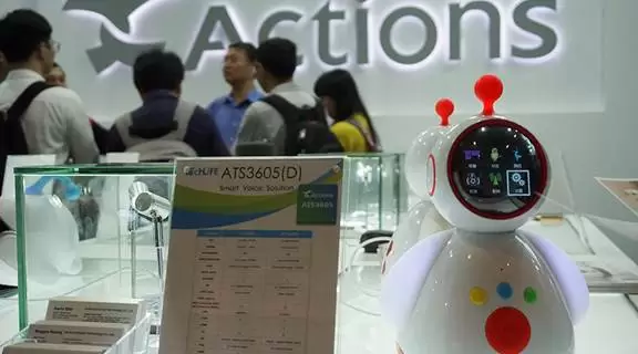 炬芯在去年就有提到过“小步快走微智能化”的概念,今年的不同点在于每一个产品线的基础上都有增加跟智能语音相关的智能的产品,就是moresmarter(更聪明的)产品。比如蓝牙音箱的有智能蓝牙音箱,玩具机器人其实炬芯原来在玩具上面就已经做了很多儿童机器人等,今年也都是可以连上网,然后加入了智能化,更多的产品都会往这个方向走。那么AI是个大概念,炬芯在AI大概念下面,将智能语音和传统产品的结合,来带给大家更多的惊喜。