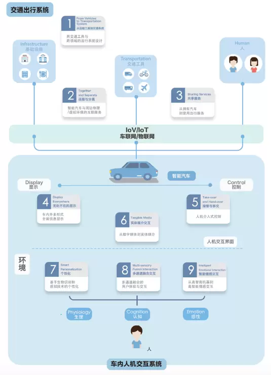 图:智能汽车人机交互设计九大趋势关系图