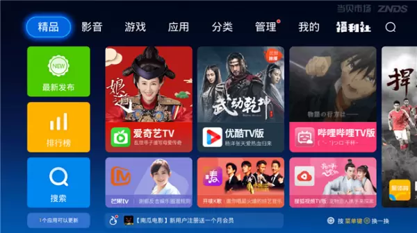 安卓7.0系统,让我们的电视机轻松享受大量不同类型的app内容,不管是下载自带应用软件里的app,或者是安装第三方应用当贝市场下载海量电视应用,都毫无压力。