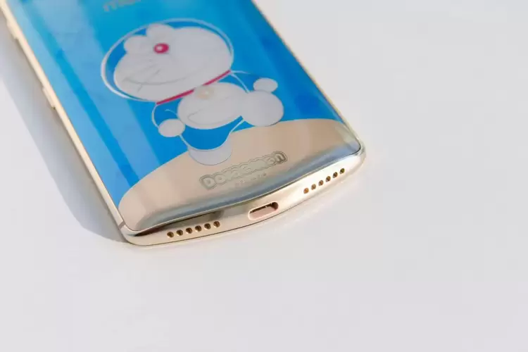 最值得一提的是,此次美图T9哆啦A梦限量版采用全新渐变蓝外观,加上哆啦A梦的造型为主题,背景缀有时光机、竹蜻蜓、记忆面包等耳熟能详的神奇道具,色彩奇幻又清新。这得益于美图T9哆啦A梦机身采用的MDT渐变工艺,也即此次机身设计制作的难点所在。为了能在光线下能呈现奇妙的色彩变幻,手机机身最终采用专用定制的半透色带转印完成,打造NCVM镜面银的镀膜质感,搭配弧度优雅的曲面玻璃,与半透的图案层相互叠加相互辉映,最终形成晶莹剔透的视觉效果。