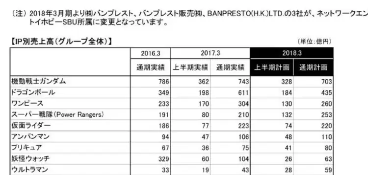 三十多年过去了,不管曾经有多少现象级的动漫出现,龙珠IP依然是当今影响力最大最赚钱的IP之一。以发行商万代南梦宫2017年的财报数据为例,“龙珠”带动了集团整体业绩的发展,龙珠以611亿日元位居第二,仅次于高达,而截止今年3月份,龙珠仍以435亿日元稳居亚军,牢牢霸占日漫二次元经济TOP3。