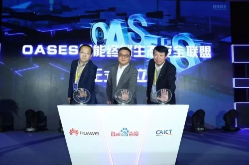 图示为百度安全联合华为、中国信息通信研究院成立OASES现场