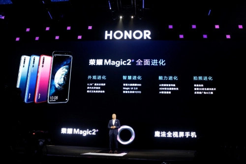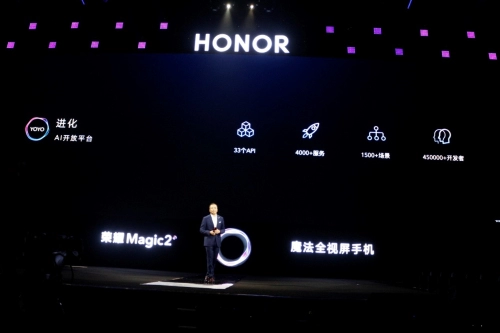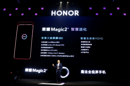 荣耀Magic在2016年底面世时,人们往往惊讶于其前后均采用3D弧面玻璃的外观设计,而其内置的Magic Live智慧系统却被很多人忽略掉了。人们都以为那就是一个手机助手,即使它能够随着用户使用自动学习、自动进化。所有轻视荣耀Magic的人都没有想到,荣耀手机在AI上的领先,正是发端于此。在荣耀Magic初步尝试了AI在软硬件结合方面应用后,2017年,华为发布了全球第一款带有独立AI单元的手机处理器麒麟970,很快荣耀V10就搭载这款芯片批量供货,市场就此进入了AI手机普及时代。2018年4月,当所有手机厂商还在忙于追赶第一波AI浪潮的时候,新发布的荣耀10又将手机AI进一步提升至2.0时代,把AI技术应用于广受用户关注的摄影领域。2018年10月底,荣耀Magic2不但将AI摄影拓展为更加广阔的AI视野(AI VISION),还带来了全新的AI智慧生命体“Yoyo”。