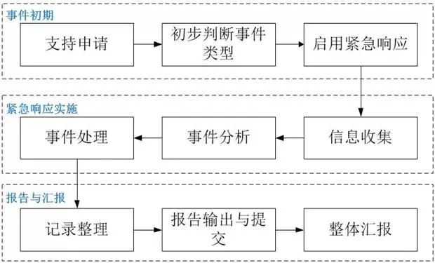 青藤云安全应急响应服务事件处理流程主要分为三个阶段,包括事件初期、应急响应实施及输出报告与汇报。